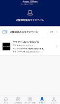 アメックスのアプリを入れている場合、オファーというメニューがありますので、こちらからオファーとオファーの登録を行うことが出来ます。